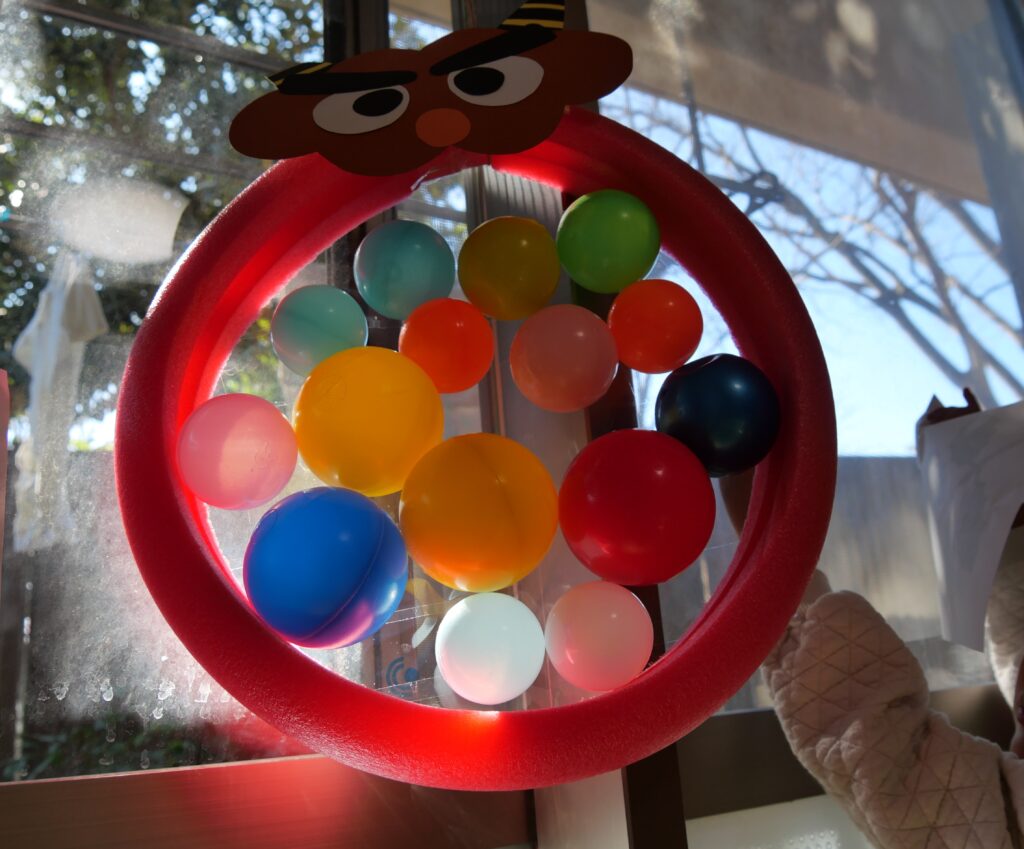 節分が近づくにつれ、「おにのパンツ」の歌が何度も響いてきました。子どもたちは、この手遊び歌が大好き。リズミカルに、楽しそうな声が聞こえてきました。