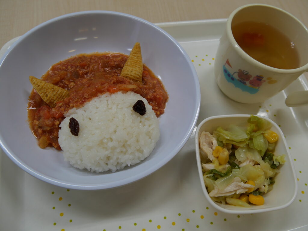 お昼ごはんには、調理さんの作ってくれた可愛い鬼もいただきました。