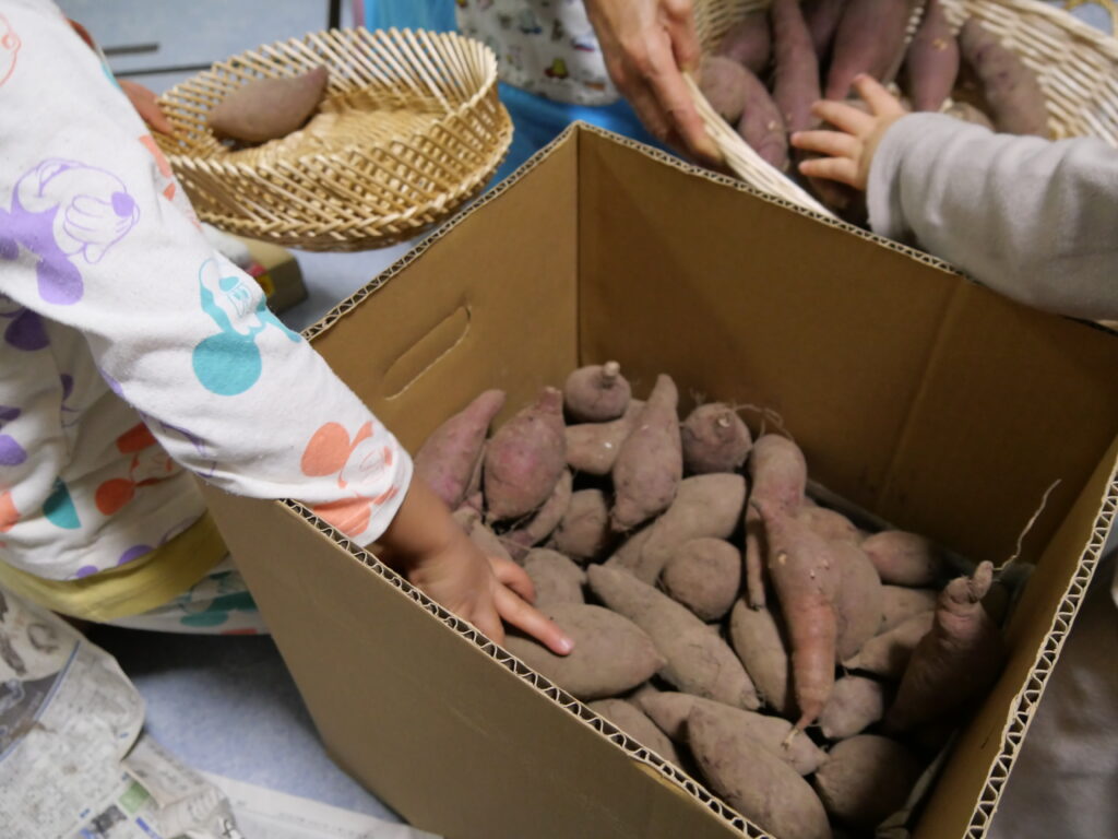 さつまいもは大きいものから小さいものまで形も様々で、かわいらしいまん丸なものを小さい子へ、細長いものをちゃーちゃんにプレゼントする子もいました。