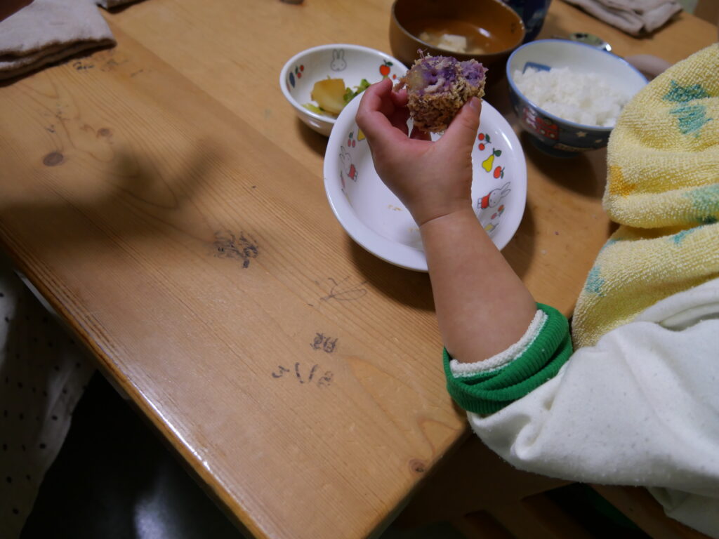 コロッケはみんなの好物です。真っ先にパクパクと美味しそうに食べていました。