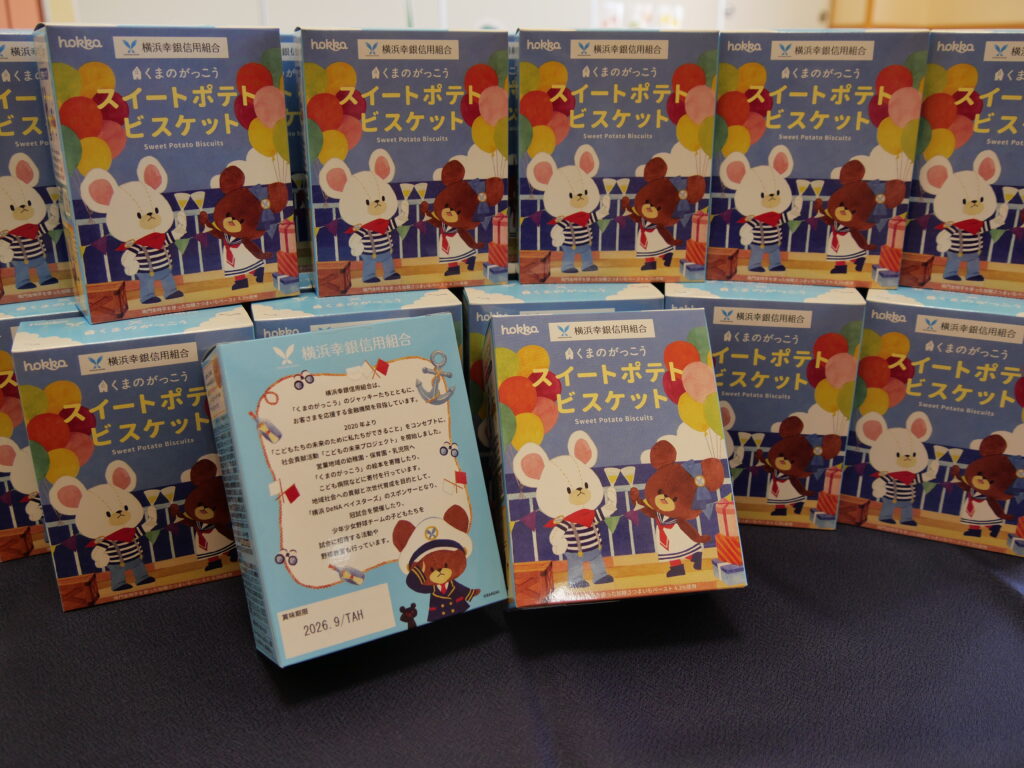 横浜幸銀信用組合様よりスイートポテトビスケットを40点ご寄付いただきました。北陸製菓(株)とくまのがっこうが共同で制作されたオリジナルビスケットとのことで、ひとつひとつがとても可愛らしく、子どもたちにとって嬉しい贈り物となりました。美味しくいただきました。いつも当院への温かいご支援、誠にありがとうございます。