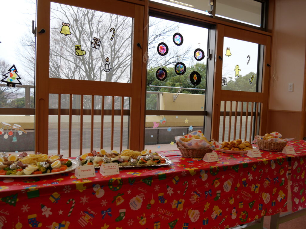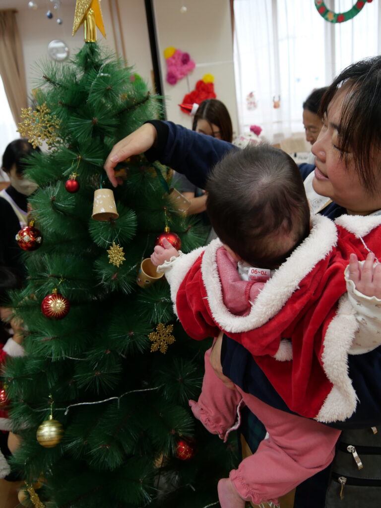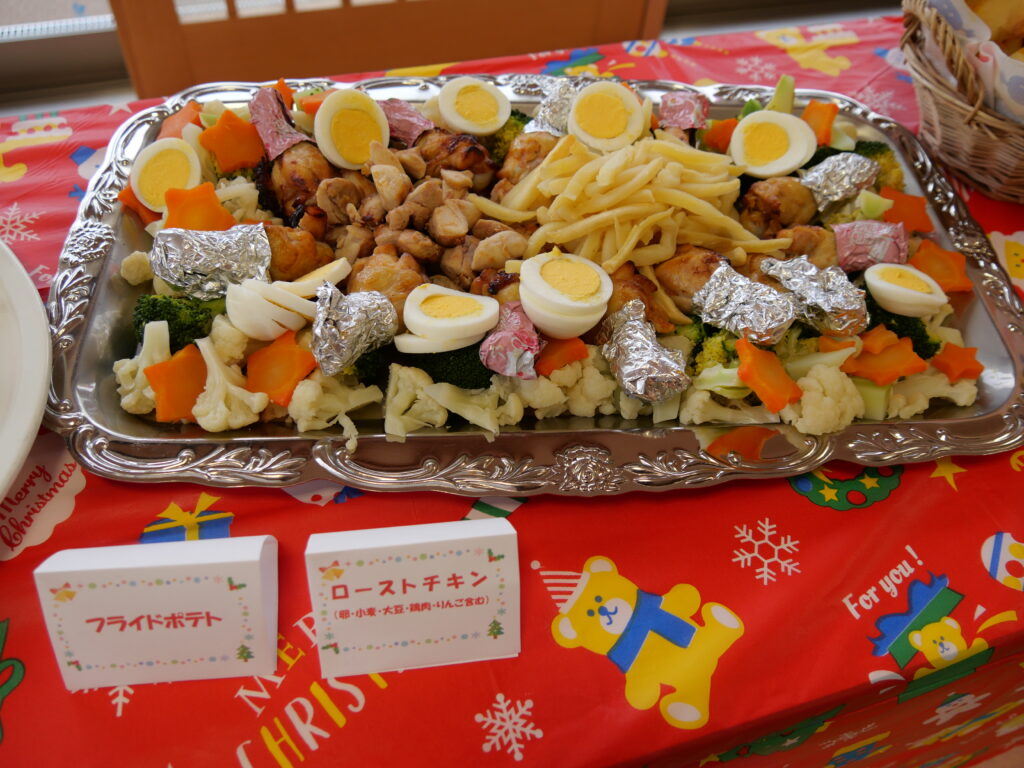 コロナ後に再開した、もう一つお楽しみ。調理さんの手作りランチビュッフェ。「どれがいい?」のちゃーちゃんの声かけに「こっち!」と伝えたり、「どれ位?」の質問に「いーっぱい!」と答えたりする子もいました。美味しいご飯をお腹いっぱい食べ、満足そうな表情が印象的でした。今年もベビーホームのクリスマスは、楽しくにぎやかな一日を過ごすことができました。実親さん、里親さんも一緒にテーブルを囲み、職員も交じって、子どもの成長をあれこれ共有し、話も弾みます。会場全体が、ほっこりした気持ちに包まれました。皆さんのご協力、ご支援に心より感謝いたします。